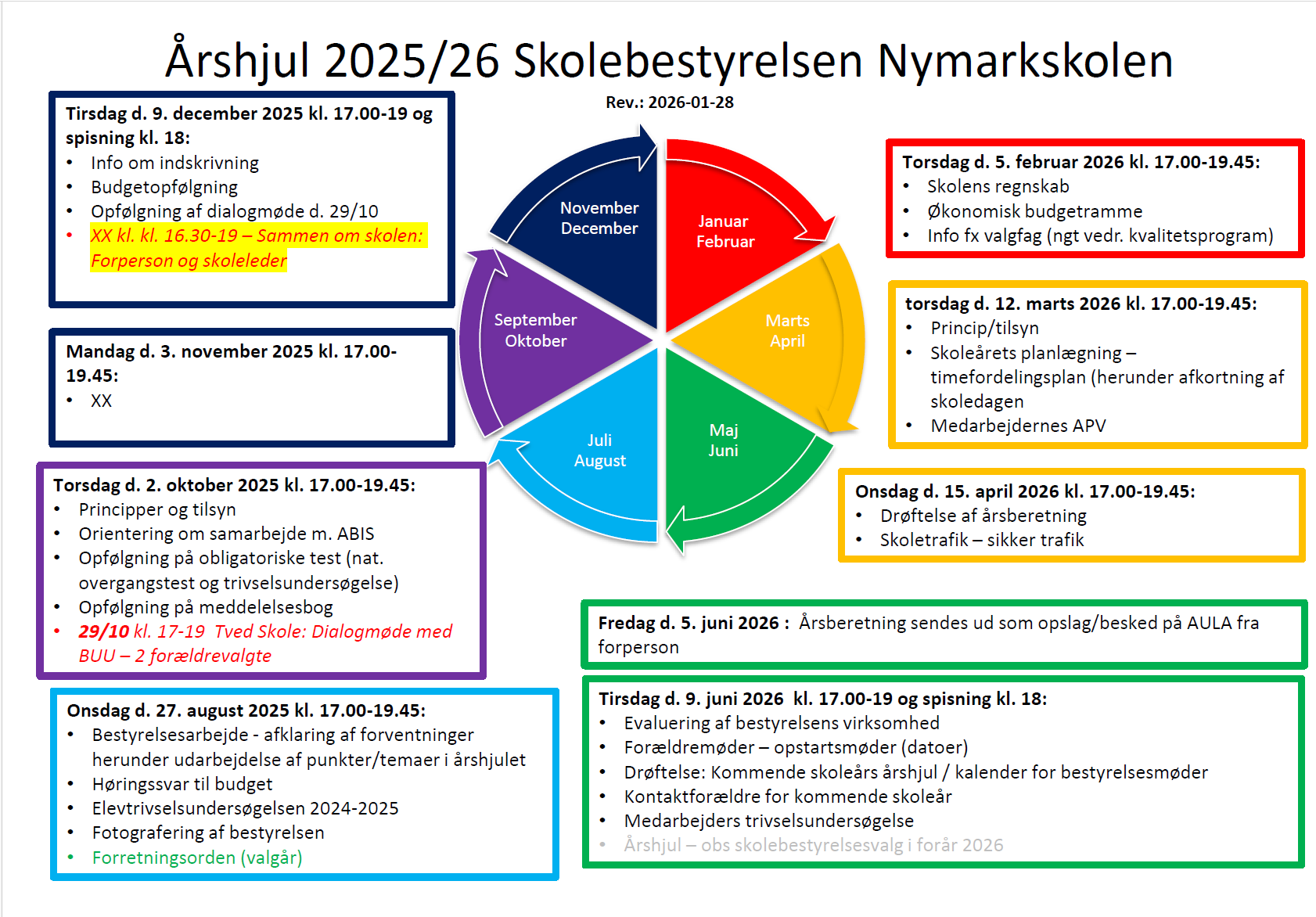 Skolebestyrelsens årshjul. Dokumenter mediebibliotek Dokument 2026-01-28_Årshjul Bestyrelsesmøder 2025-2026.pdf Shape Created with Sketch.